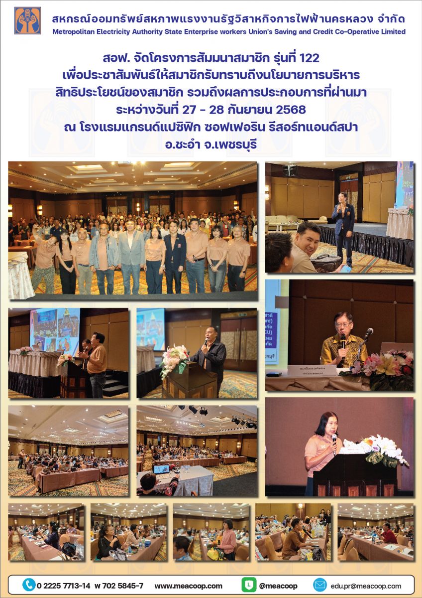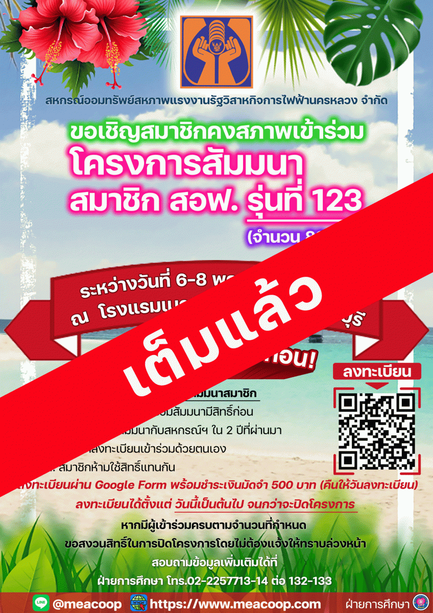 ประกาศรายชื่อผู้มีสิทธิเข้าร่วมสัมมนา รุ่นที่ 123 ระหว่างวันที่ 6 - 8 ตุลาคม 2568