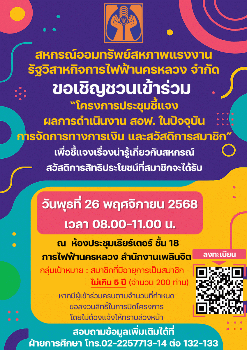 ขอเชิญเข้าร่วมโครงการชี้แจงผลการดำเนินงาน สอฟ. ฯ