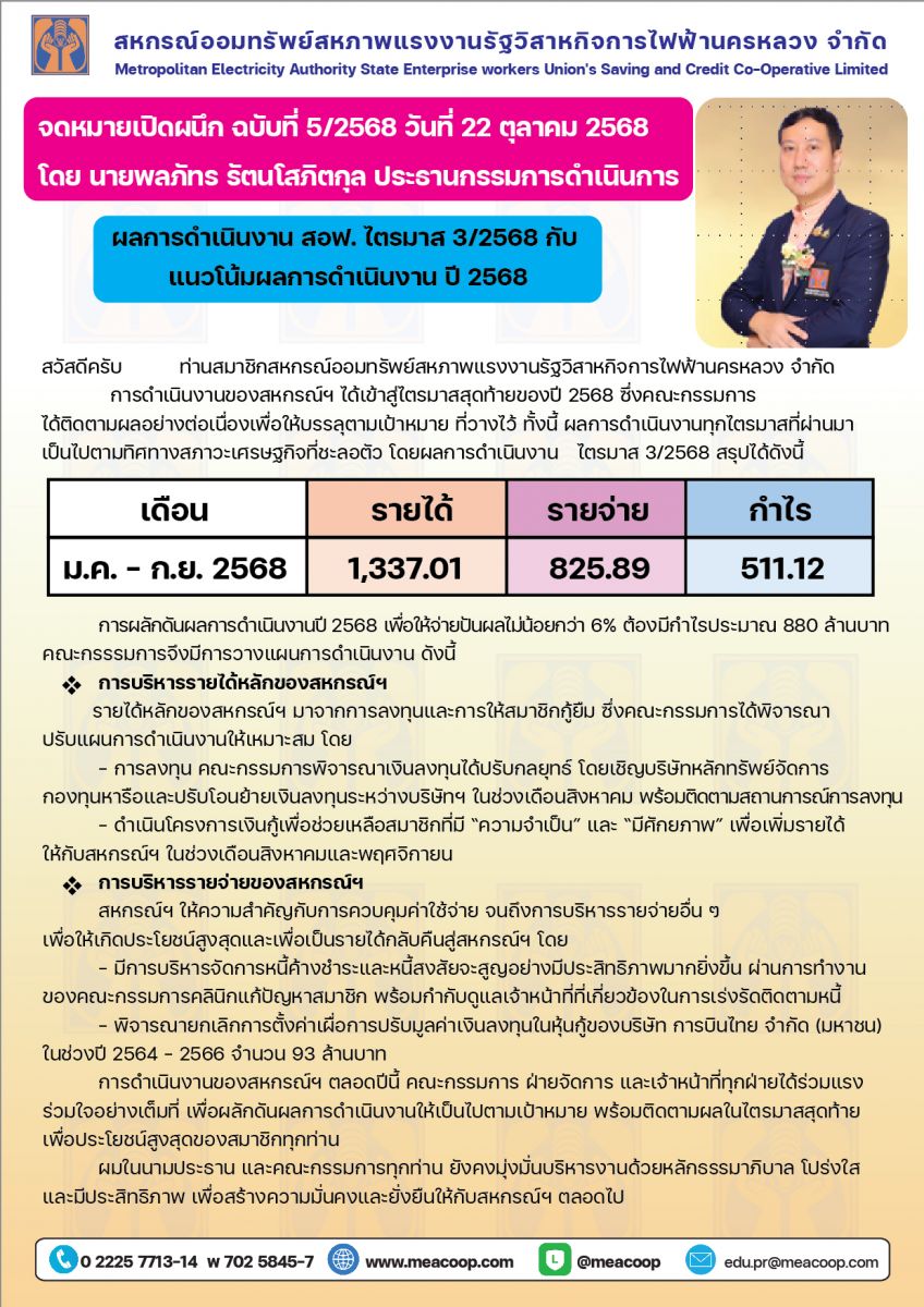 จดหมายเปิดผนึก ฉบับที่ 5/2568 วันที่ 22 ตุลาคม 2568