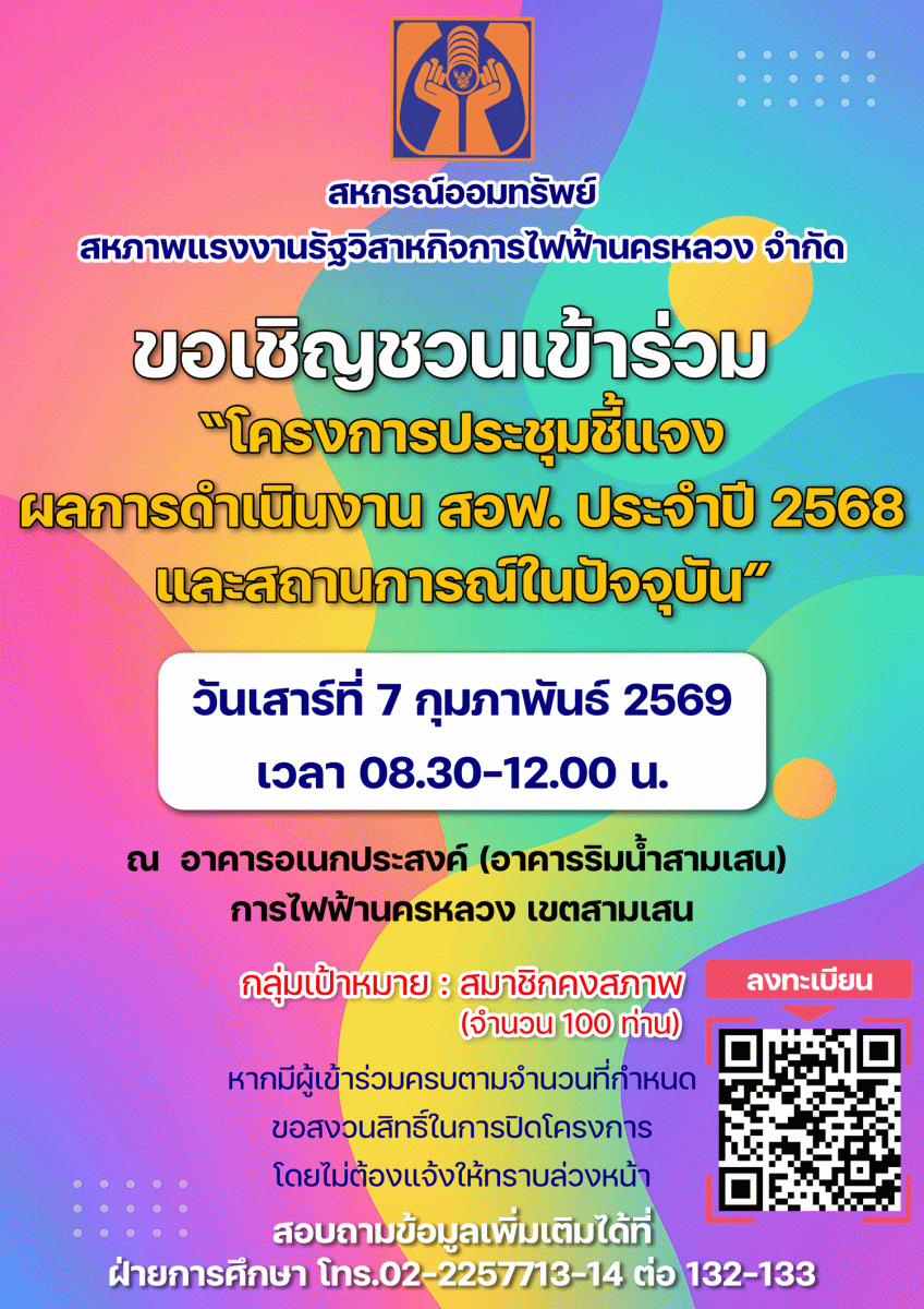 ขอเชิญชวนเข้าร่วม โครงการประชุมชี้แจงผลการดำเนินงาน สอฟ. ประจำปี 2568 ฯ