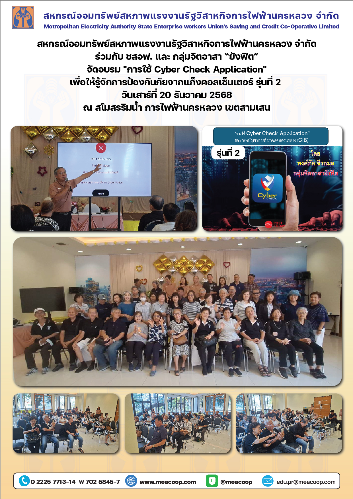 สอฟ. ร่วมกับ ชสอฟ. และ กลุ่มจิตอาสา “ยังฟิต” จัดอบรม "การใช้ Cyber Check Application" เพื่อให้รู้จักการป้องกันภัยจากแก็งคอลเซ็นเตอร์ รุ่นที่ 2