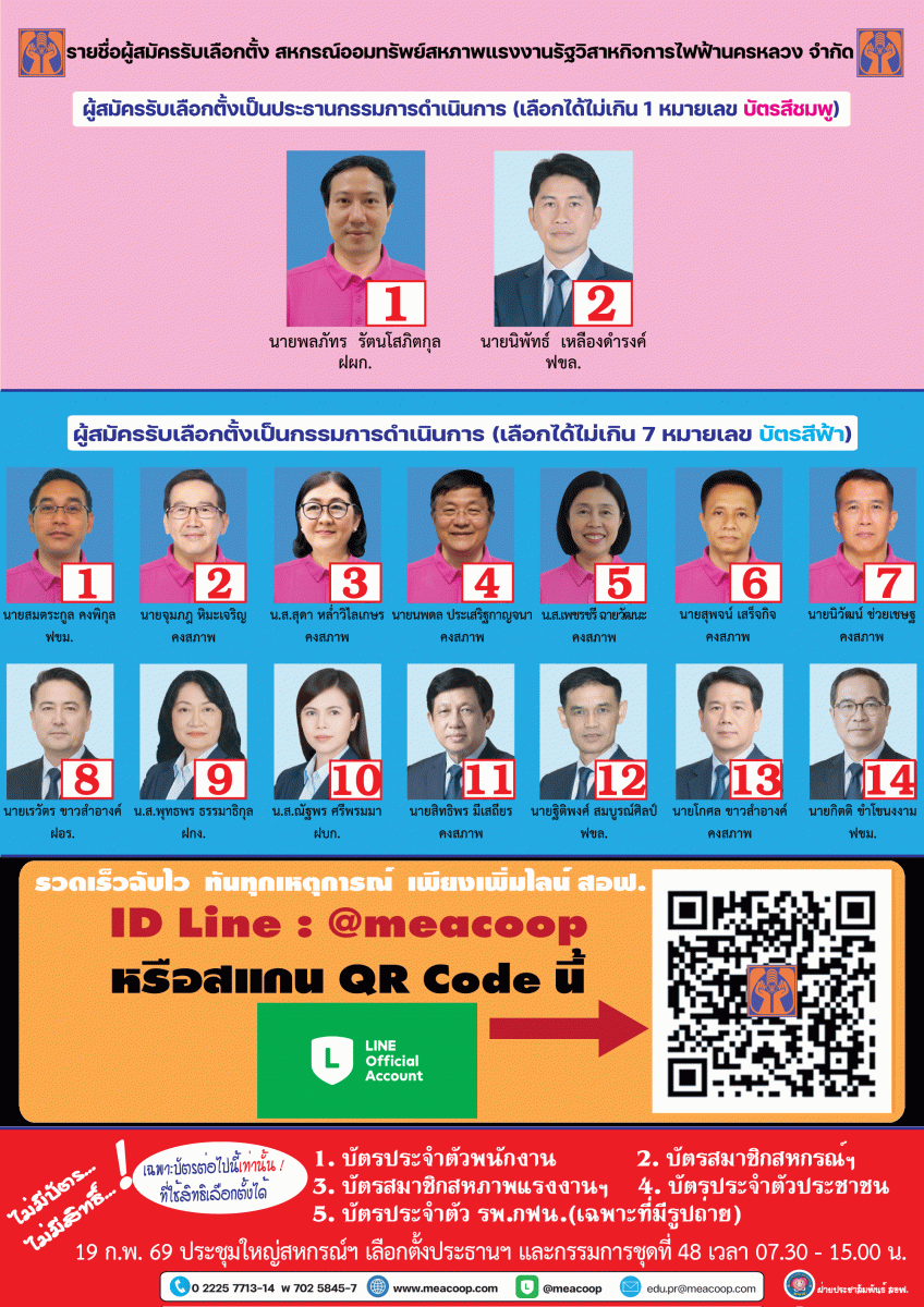 ขอเชิญสมาชิกร่วมงานประชุมใหญ่สามัญประจำปี 2569 วันพฤหัสบดีที่ 19 กุมภาพันธ์ 2569