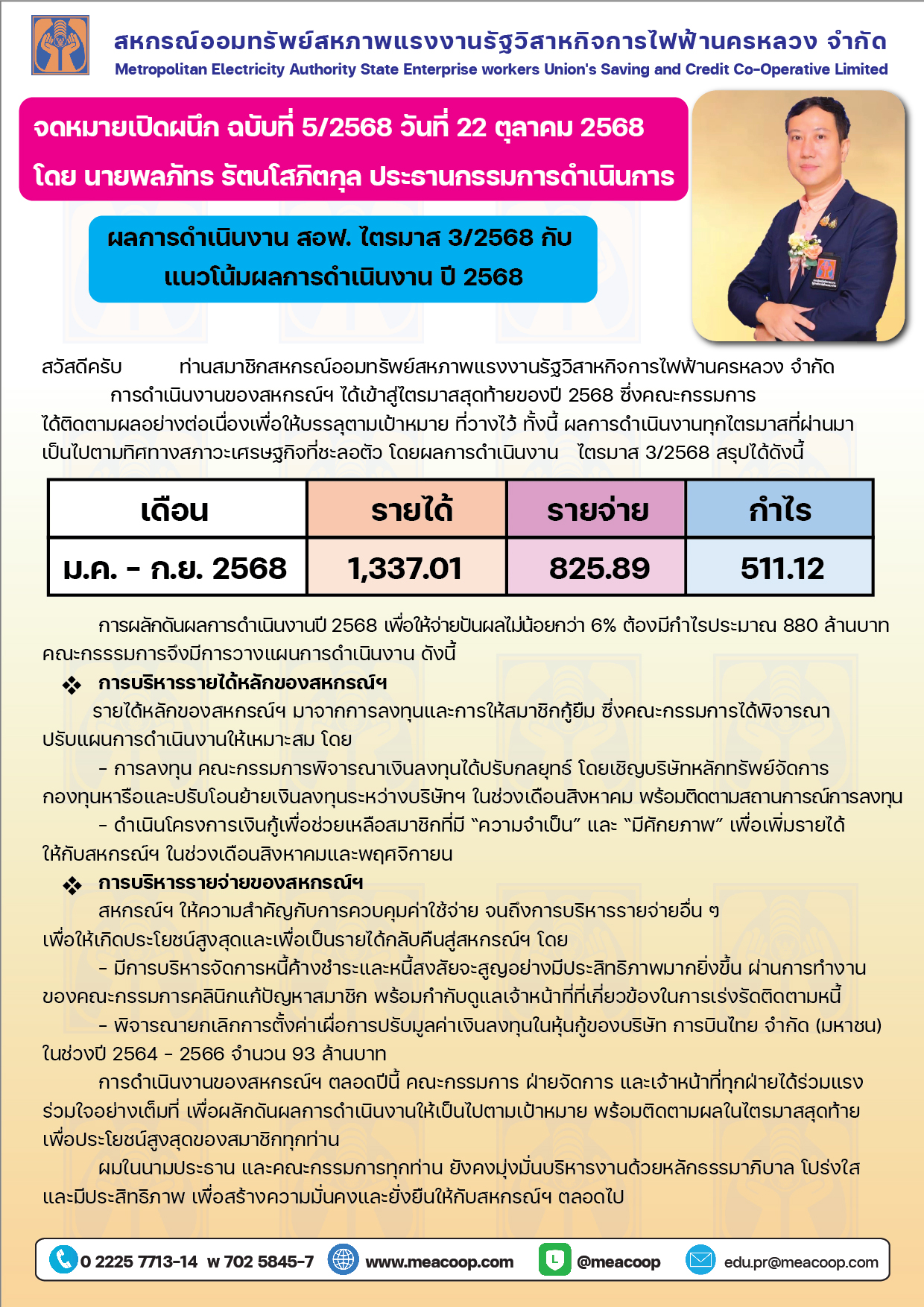 จดหมายเปิดผนึก ฉบับที่ 5/2568 วันที่ 22 ตุลาคม 2568