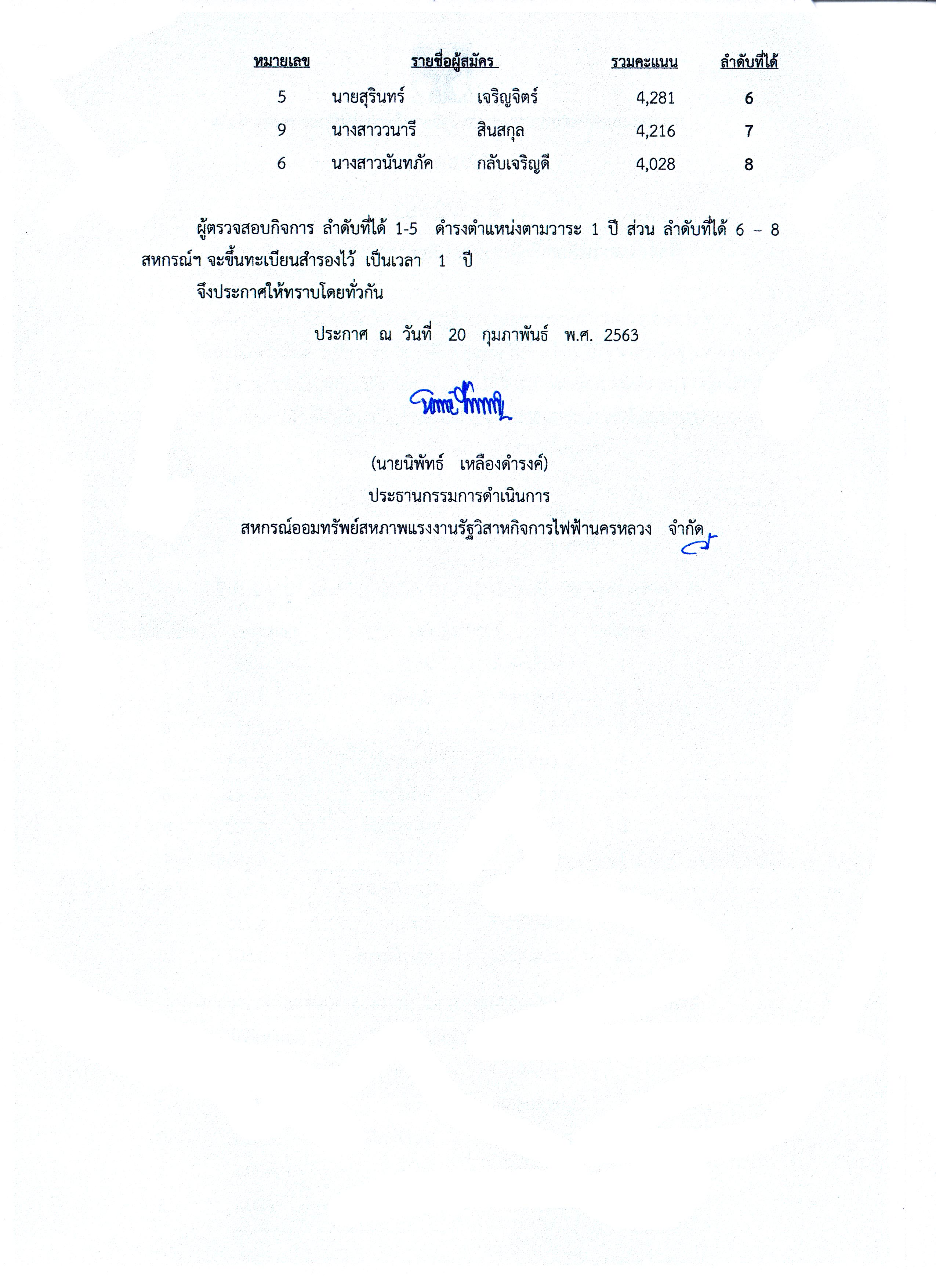 • ประกาศที่ 7/2563 เรื่อง ผลการเลือกตั้งผู้ตรวจสอบกิจการสหกรณ์ ประจำปี 2563