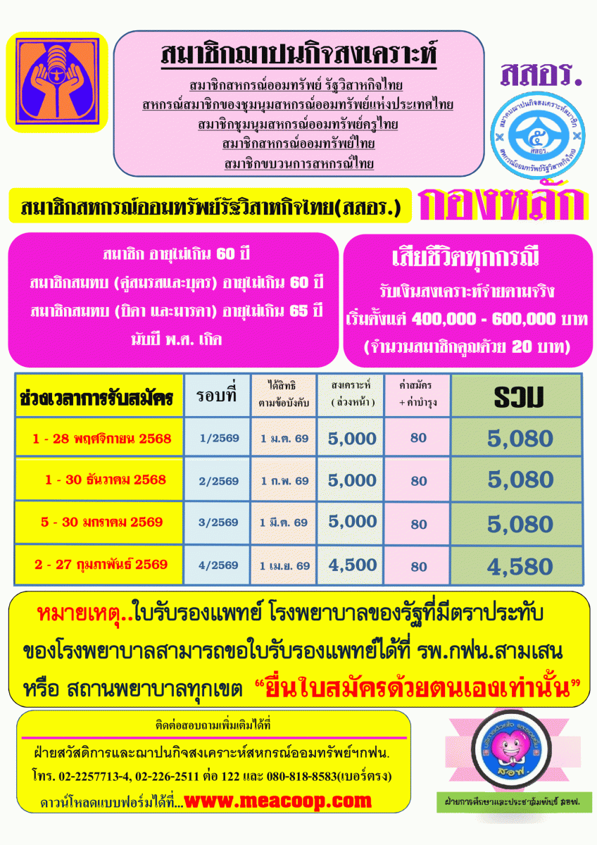 รับสมัครสมาชิกฌาปนกิจสงเคราะห์ สสอร. กอง กองหลัก