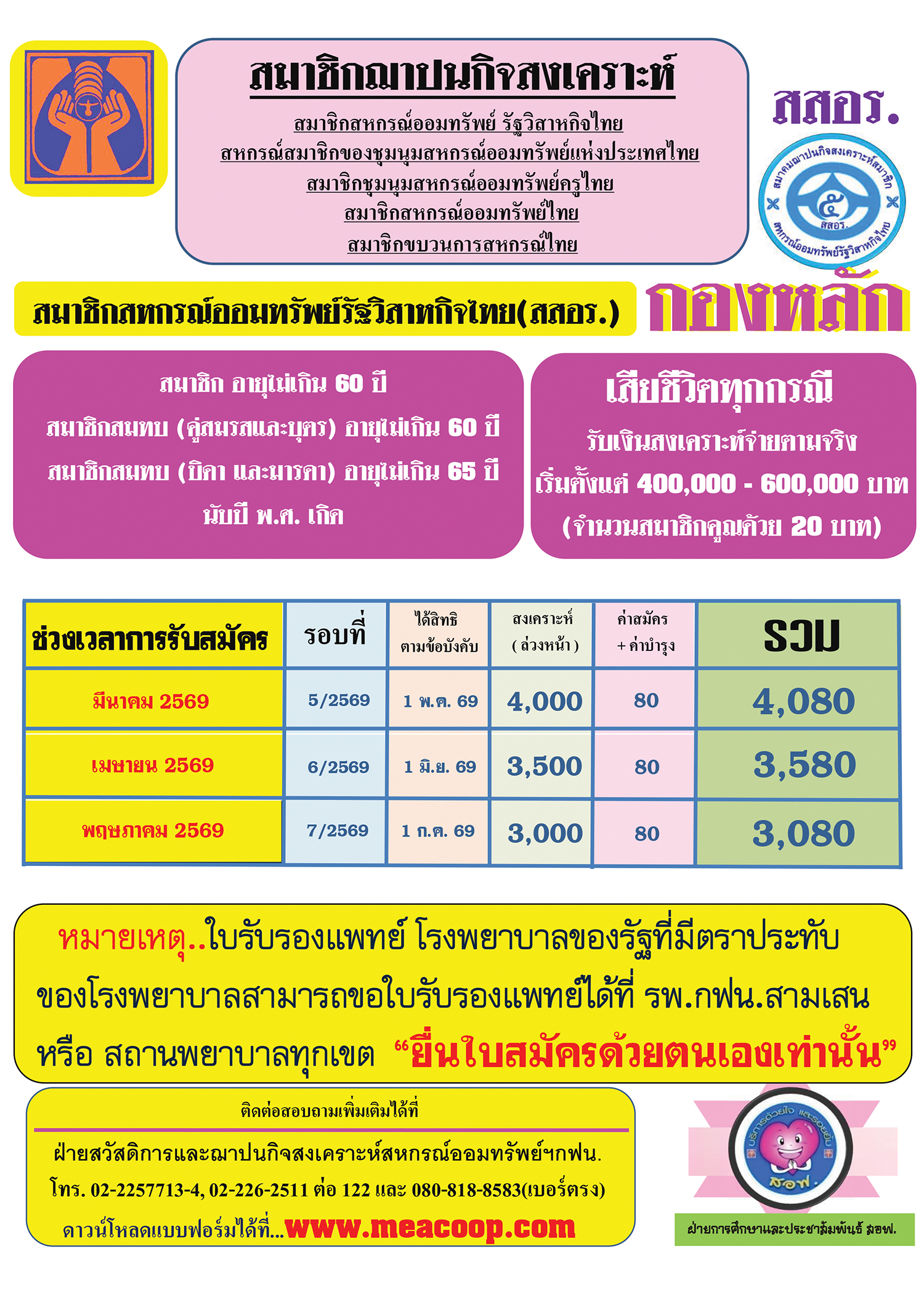 รับสมัครสมาชิกฌาปนกิจสงเคราะห์ สสอร. กอง กองหลัก