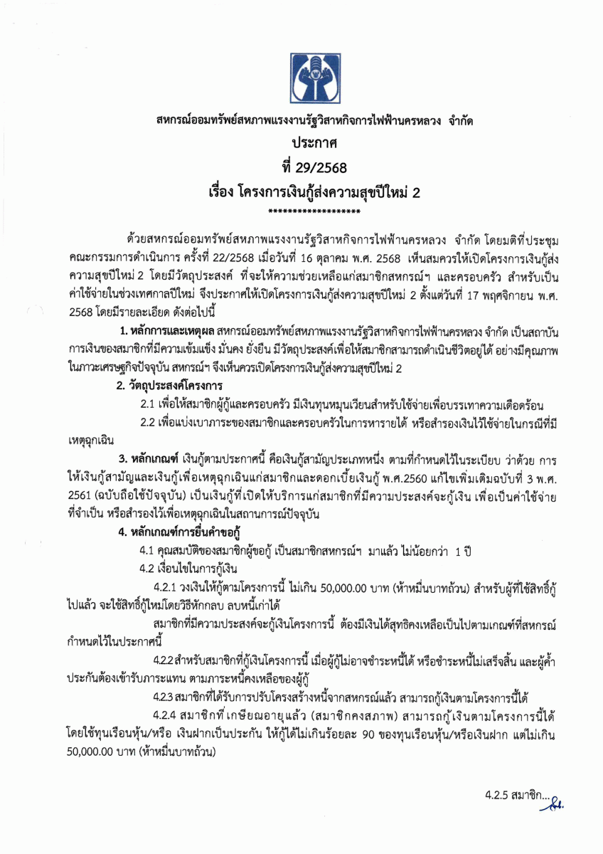 ประกาศที่ 29/2568 เรื่อง โครงการเงินกู้ส่งความสุขปีใหม่ 2