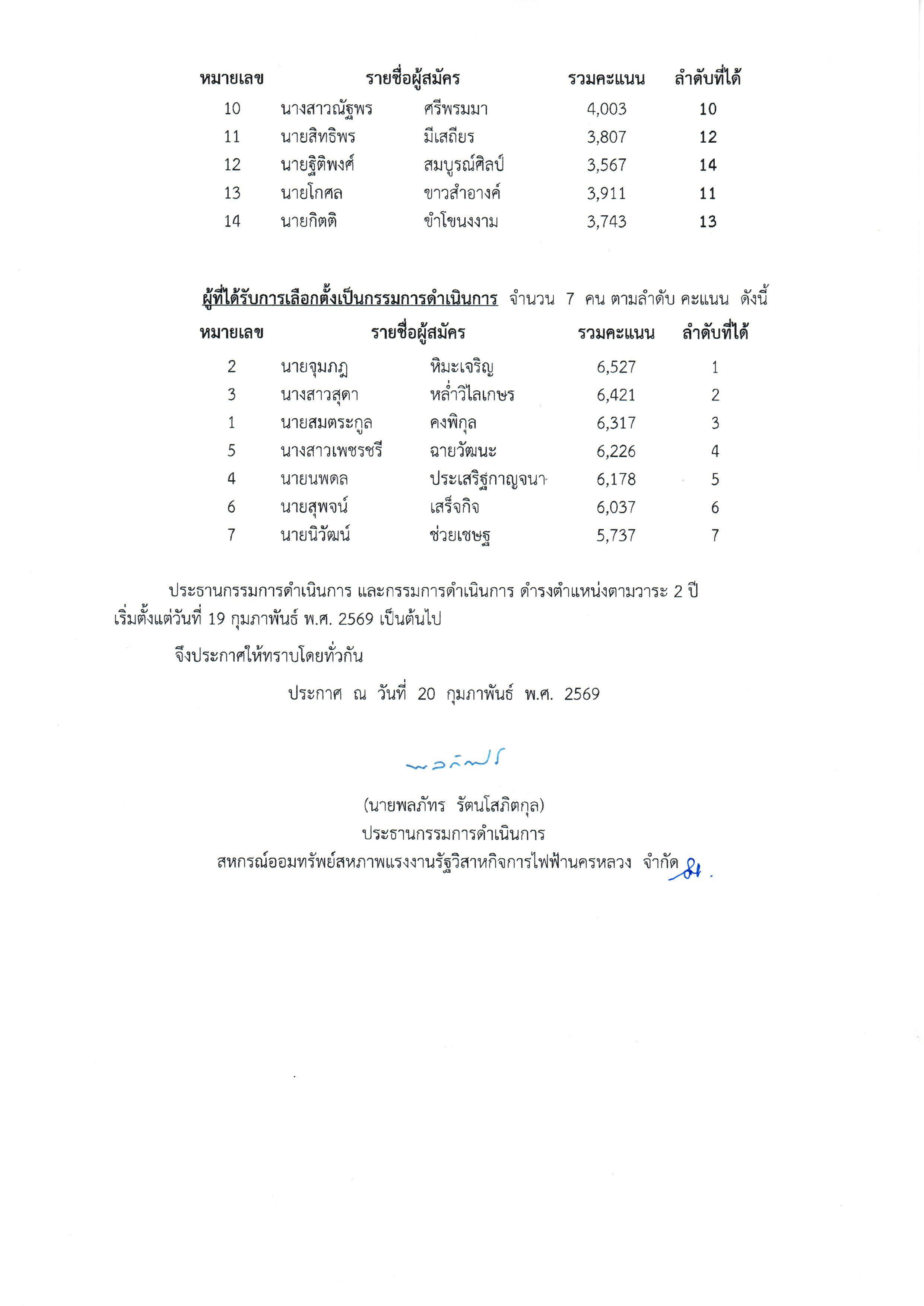 ประกาศที่ 5/2569 เรื่อง รายงานผลการเลือกตั้งประธานกรรมการดำเนินการ และ กรรมการดำเนินการ ประจำปี 2569